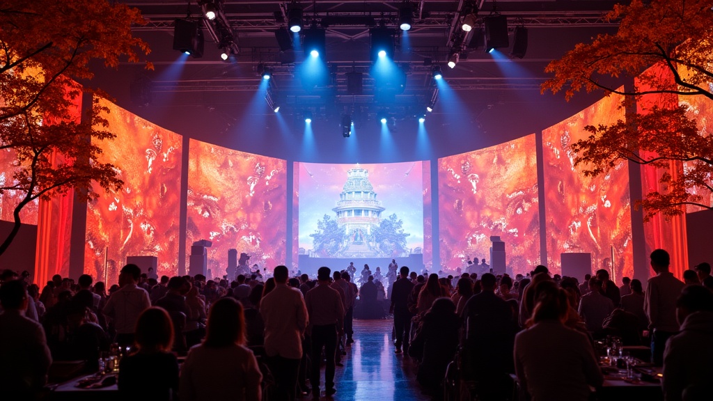 Sự kiện sử dụng công nghệ LED hiện đại với thiết kế sáng tạo lấy cảm hứng từ những biểu tượng mùa thu Hà Nội như hoa cúc, cây bàng. Đây không chỉ là yếu tố thẩm mỹ mà còn là công cụ marketing hiệu quả.