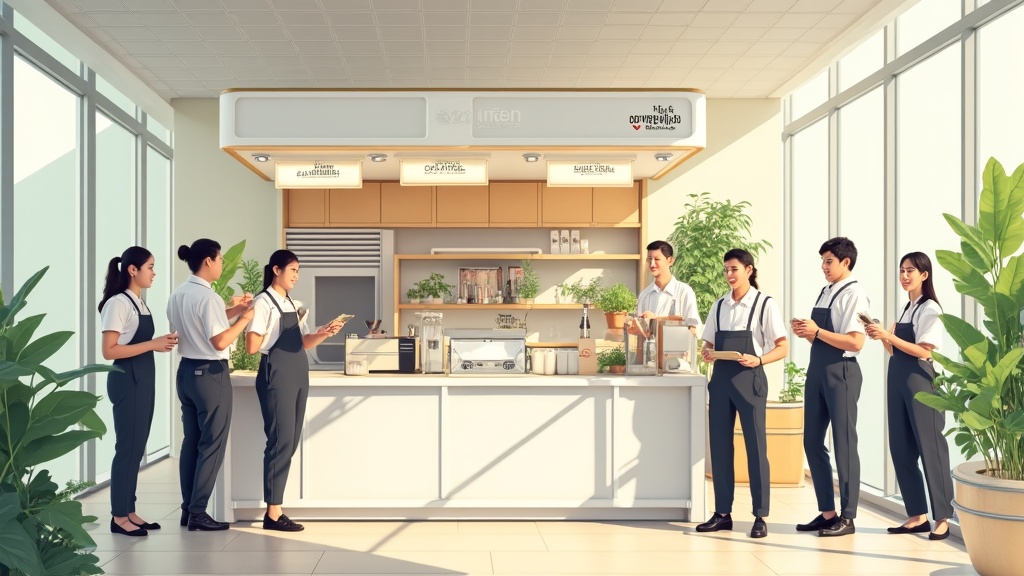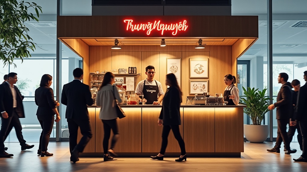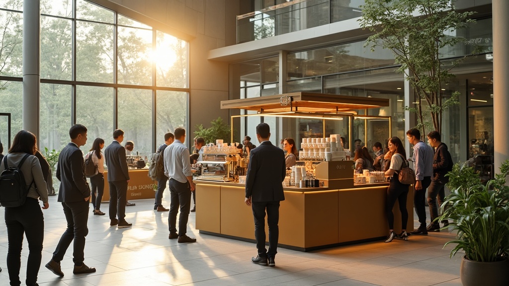 Tưởng tượng một kiosk nhỏ gọn trong tòa nhà văn phòng của bạn. Mỗi sáng, hàng trăm nhân viên ghé qua lấy cà phê trước khi bắt đầu ngày làm việc. Không cần bàn ghế, không cần không gian rộng, nhưng doanh thu? Hoàn toàn ấn tượng.