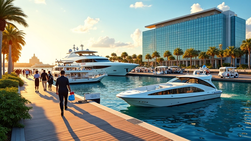 1. Xuất phát từ Broward County Convention Center – Đây là trung tâm logistics chính với hệ thống shuttle và golf cart miễn phí đến tất cả các marina.
